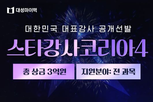 [스타데일리뉴스=황규준 기자] 대성마이맥이 강사 선발 대회 '스타강사코리아4'의 개막 소식을 알렸다.