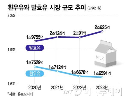 흰우유와 발효유 시장 규모 추이/그래픽=이지혜 |