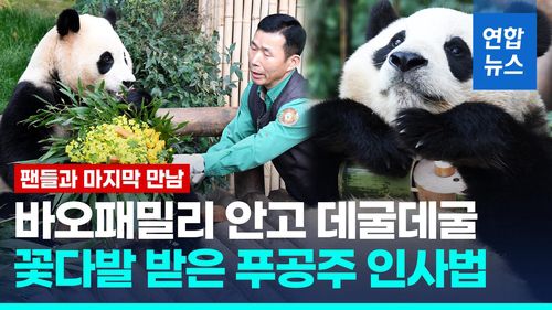 (서울=연합뉴스) 국내에서 태어난 '1호' 자이언트 판다 푸바오가 3일 마지막으로 팬들을 만났습니다.