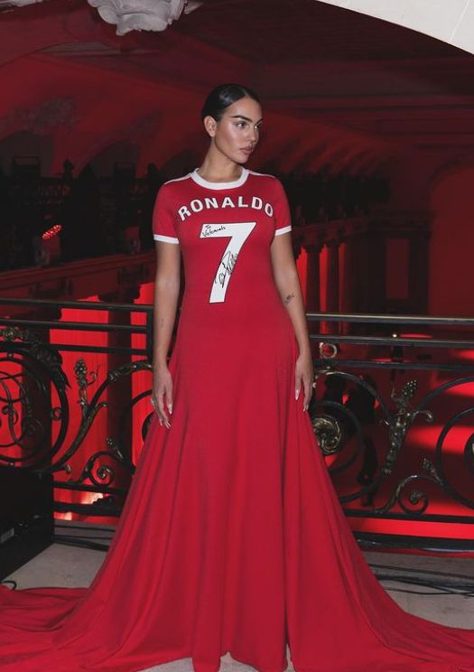 호날두의 여자친구 조지나 로드리게스(30)는 파리패션위크에 참석해 모델로 변신했다. 호날두의 맨유시절 유니폼을 오마주한 드레스를 입은 조지나는 모델로 변신해서 런웨이에서 캣워크를 했다.