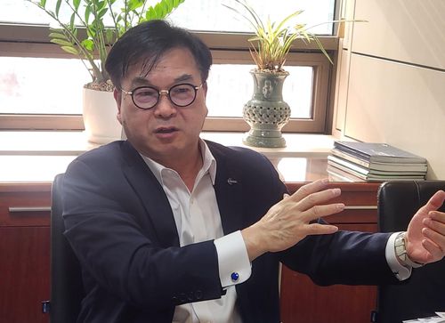 연합뉴스와 인터뷰 중인 이종승 IR큐더스 대표 |