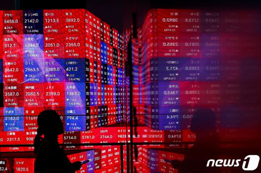 한 방문객이 일본 니케이 증시 시세 전광판 앞을 지나고 있다. 이날 일본 증시 대표 주가지수인 니케이225 평균주가(니케이지수)는 34년만에 장중 사상 최고치를 갈아치웠다. 2024.02.22. ⓒ 로이터=뉴스1 ⓒ News1 정윤영 기자 |
