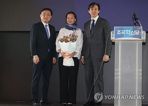 (서울=연합뉴스) 류효림 기자 = 조국 조국혁신당 대표(오른쪽)가 4일 서울 동작구 사당동 아트나인에서 열린 인재영입식에서 1호 영입 인재 신장식 변호사와 2호 영입 인재 이해민 씨와 기념 촬영을 하고 있다. 2024.3.4