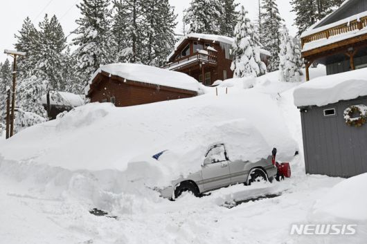 [트러키( 미 캘리포니아주)= AP/뉴시스] 4일까지 계속된 캘리포니아 북부 폭설로 시에라 네바다 산맥의 도너 호수 부근의 주택과 차량들이 깊은 눈속에 파묻혀 있다. 2024. 03. 05. |