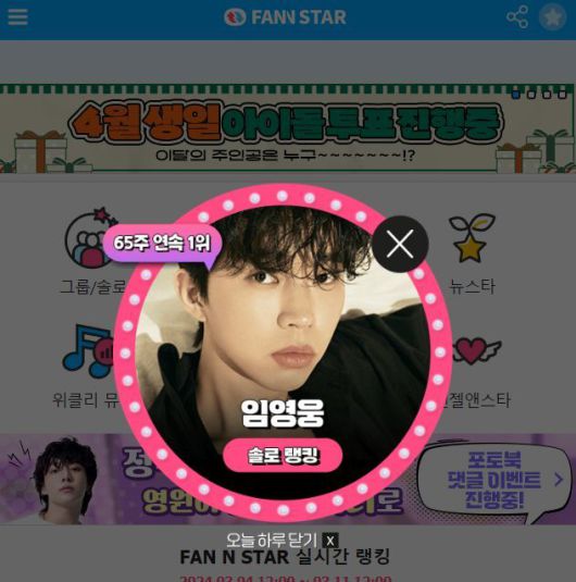 '팬앤스타' 2월 넷째 주 솔로 랭킹 투표에서 4566만 8343표 득표