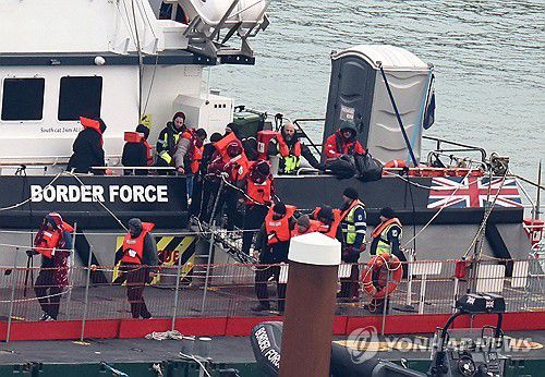 이주민으로 보이는 사람들이 영국 도버항에서 하선하고 있다. [로이터=연합뉴스 자료사진] |