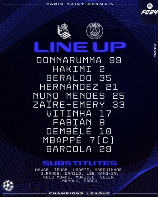 프랑스 르파리지앵은 중원에 이강인 대신 자이르-에메리, 비티냐, 파비안 루이스 중원 조합이 가동될 것으로 예상했다. 공격진도 바르콜라, 음바페, 뎀벨레 트리오가 출전할 것으로 봤다.