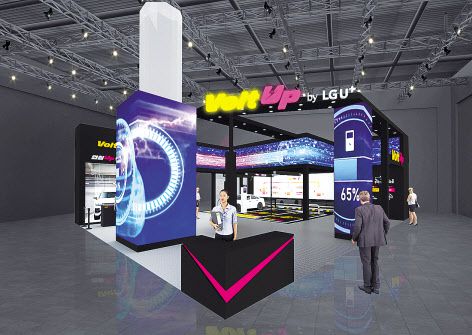 LG유플러스는 6일부터 사흘간 서울 강남구 삼성동 코엑스에서 열리는 ‘EV트렌드코리아’ 전시회에 참가해 충전서비스 ‘볼트업(VoltUp)’을 선보인다. 전시회에 마련된 볼트업 부스조감도. |