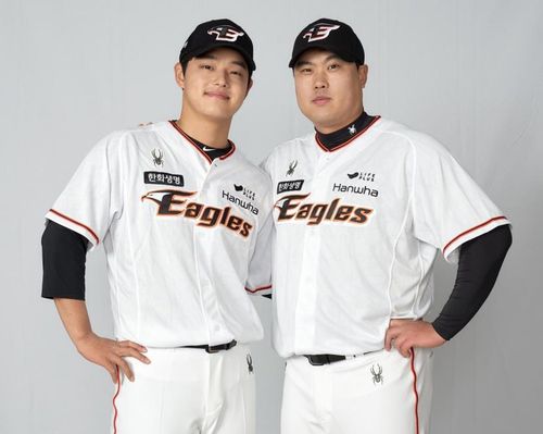 류현진은 팀은 물론 한국 야구대표팀의 차세대 에이스로 꼽히는 문동주(20)와 함께 포즈를 취했다.