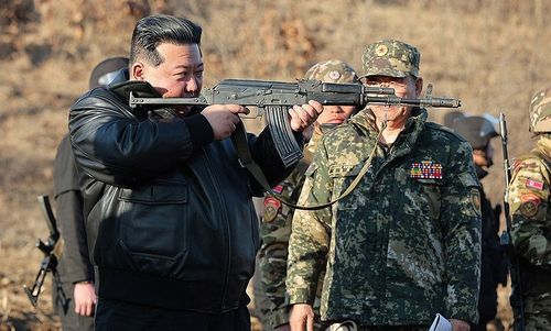 김 위원장은 쌍안경으로 훈련 상황을 주시하고 직접 소총을 들고 사격하는 자세를 취하기도 했다. 그는 훈련에 참가한 장병들과 기념사진도 찍었다.