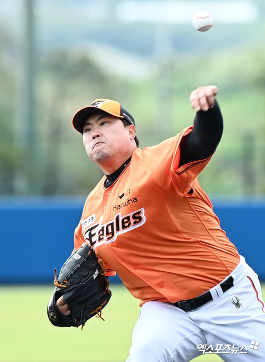 (엑스포츠뉴스 대전, 조은혜 기자) 12년 만에 한화 이글스로 복귀한 류현진이 자체 청백전에서 4이닝, 50구 전후를 소화한다.