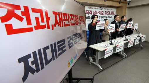 경제정의실천시민연합(경실련) 구성원들이 7일 오전 서울 종로구 경실련 강당에서 양대정당 공천 부적격 심사기준 실태발표 기자회견을 하고 있다. 경실련은 이날 양대정당 공천 부적격 심사기준의 문제점을 지적하고 현역 의원 평가 자료 및 심사 자료 공개 등을 촉구했다. (사진=뉴스1) |
