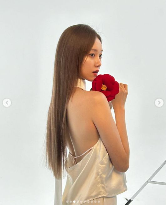 사진에서 이성경은 화이트 컬러의 홀터넥 드레스를 입고 등을 노출, 반전 뒤태를 드러내며 섹시미를 과시했다. 특히 레드 컬러의 드레스를 입고 손하트를 만들며 강렬한 섹시미를 드러내 눈길을 끈다.