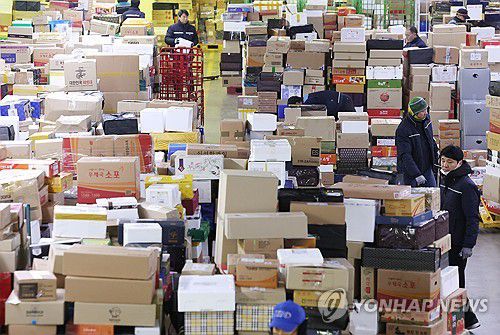 택배가 쌓인 서울 광진구 동서울우편물류센터. [연합뉴스 자료사진] |