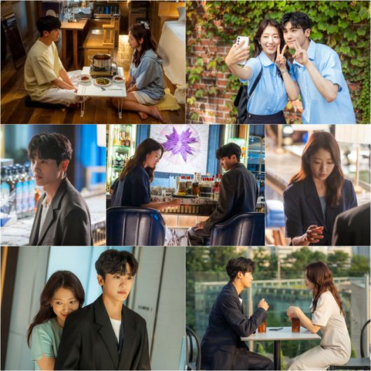 여정우, 남하늘의 미공개 스틸은 이들의 시시각각 변화하는 감정선을 다시 한번 되돌아보게 한다. 마침내 서로의 마음을 확인한 후, 본격적인 현실 연애를 시작한 두 사람의 홈 데이트에는 풋풋한 설렘이 전해진다. 여정우가 남하늘만을 위해 준비한 둘만의 수학여행에는 낯설지만 들뜬 마음이, 말없이 마주 보고 앉아 여유를 만끽하는 찰나와 말 대신 백 허그로 고맙고 미안한 마음을 전하는 순간엔 평온하고 고요한 마음이 오롯이 느껴져 보는 이들에게도 힐링을 선사한다. 반면, 손에 쥔 유리잔이 떨어져 깨지는 순간 여정우와 남하늘의 굳은 표정은 불행을 감지한 듯 불안하고 위태롭다. 과연 종영까지 단 4회만을 남겨둔 가운데 두 사람의 브레이크 걸린 인생은 다시 상승 곡선을 그릴 수 있을지 귀추가 주목된다.