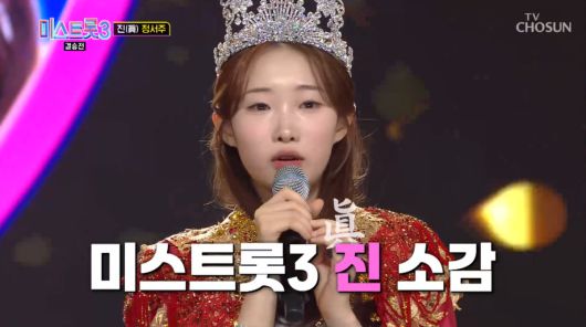 7일 방송된 TV조선 트로트 오디션 프로그램 ‘미스트롯3’ 결승에서는 정서주가 최종 우승을 차지했다.