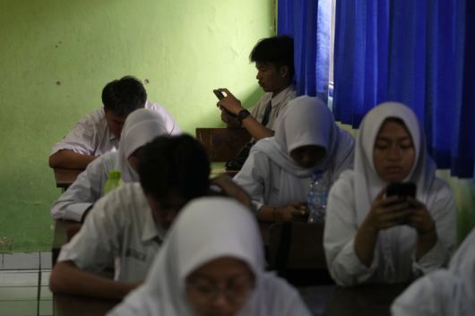 지난 1월 25일 인도네시아 자카르타의 한 고등학교에서 학생들이 스마트폰을 들여다보고 있다.AP뉴시스 |