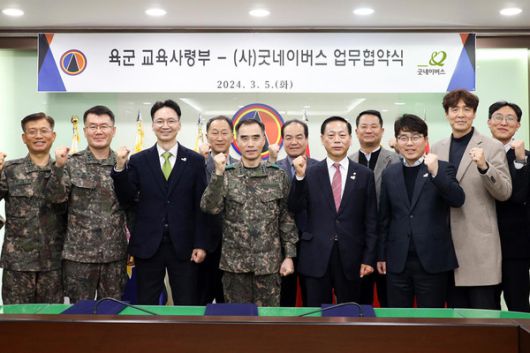 [문화뉴스 유송이 기자] 글로벌 아동권리 전문 NGO 굿네이버스(사무총장 김중곤)는 육군교육사령부(사령관 이규준), 굿네이버스 인천지역후원회 (회장 유정학)와 함께 육군 장병의 인성 함양을 위한 업무 협약식을 진행했다고 7일 밝혔다.