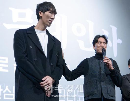 배우 김병오(왼쪽)와 김민준이 9일 오후 서울 용산구 CGV용산아이파크몰에서 열린 영화 '파묘' 개봉 3주차 무대인사에 참석해 관객들과 즐거운 시간을 보내고 있다. 2024.03.09