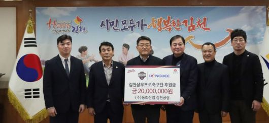 [김천=뉴시스] 박홍식 기자 = ㈜동희산업이 김천상무에 3년 연속 후원금을 전달했다.