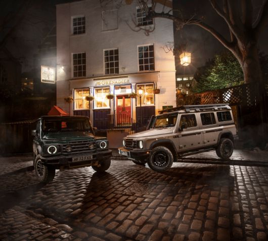 래트클리프 회장의 지휘 아래 차량 개발팀은 4륜 차량 개발과 생산에 대한 새로운 시각을 통해 비전을 현실화할 수 있도록 최고의 자동차 전문가들로 구성된 팀이 꾸려졌다. 영국에서 디자인과 설계를 맡고 독일의 엔지니어링 기술을 결합했다. 파워트레인과 서스펜션 등 주요 부품은 독일 BMW로부터 공급 받는다.