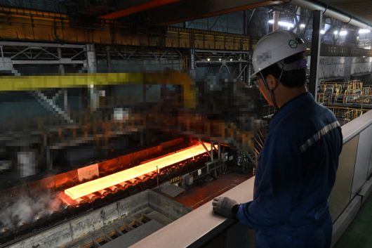 경상북도 포항시 남구 포스코 포항제철소 제2열연공장에서 제품이 생산되고 있는 가운데 관계자가 공장 설비를 살펴보고 있다. 포항=임세준 기자 |