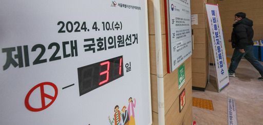 10일 서울 종로구 서울시 선거관리위원회에 설치된 전광판에 제22대 국회의원 선거까지 남은 일수가 31일이라고 표시돼 있다.