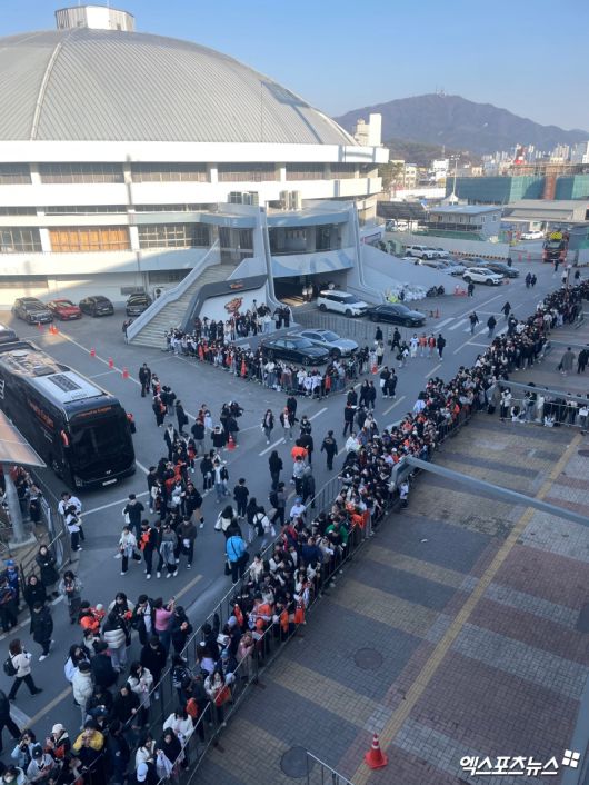 10일에는 미리 대비한 경호팀의 도움을 받아 한결 수월하게 '퇴근 팬사인회'를 진행할 수 있었다. 워낙 많은 팬들이 있었던 탓에 잠시 혼선이 생기기도 했지만, 금세 열이 갖춰졌다. 대전 유명 빵집 '성심당' 대기줄을 연상케 하는, 그보다 더 긴 대기줄이었다.
