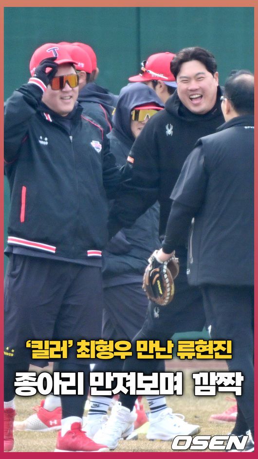 [OSEN=대전, 최규한 기자] 11일 대전 한화생명이글스파크에서 ‘2024 신한 SOL Bank KBO리그’ 시범경기 한화 이글스와 KIA 타이거즈의 경기가 열린다. 경기를 앞두고 한화 류현진과 KIA 최형우가 인사를 나누고 있다. 2024.03.10 / dreamer@osen.co.kr