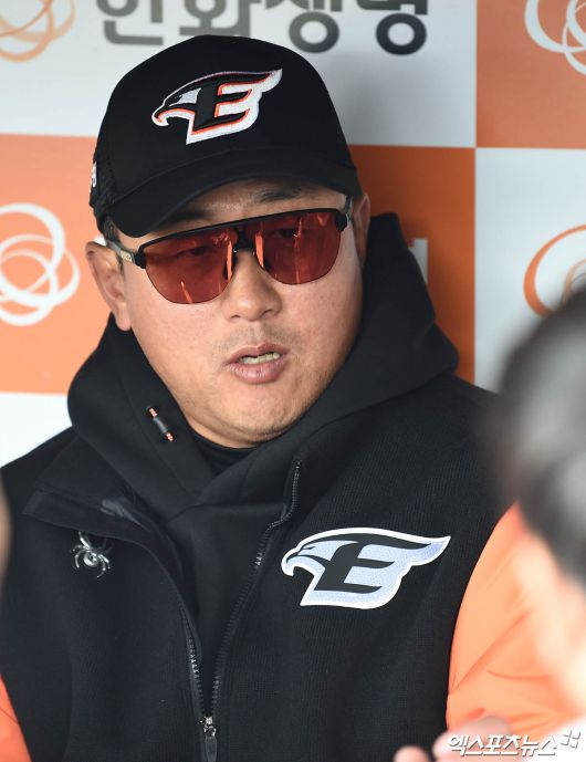 다만 최원호 감독은 "전담 포수 자리를 마련하면 엔트리가 좀 꼬인다. 상황이나 컨디션에 따라서 변화를 줘야 하는데, 전담 포수가 있다면 이러지도 저러지도 못한다"며 전담 포수 기용에 대해선 선을 그었다.