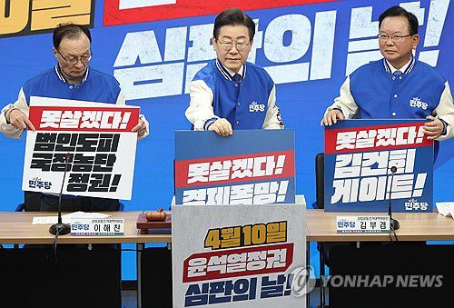 이 대표는 "민주당은 역사의 갈림길마다 바른 선택을 해왔던 국민의 집단지성을 믿는다"며 "심판의 날에 국민들은 떨치고 일어나 나라의 주인은 영부인도, 천공도 아닌 국민이라는 점을 용산이 깨닫게 할 것"이라고 말했다.