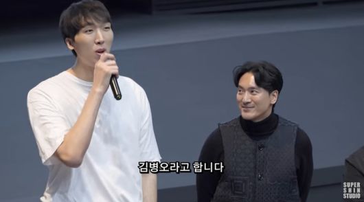 11일 온라인 커뮤니티에 올라온 ‘파묘’ 무대인사 현장 영상에서 배우 김민준과 함께 220.8㎝ 키의 남성이 등장해 눈길을 끌었다. 바로 일본 장군 역할을 했던 농구선수 출신 김병오(34).