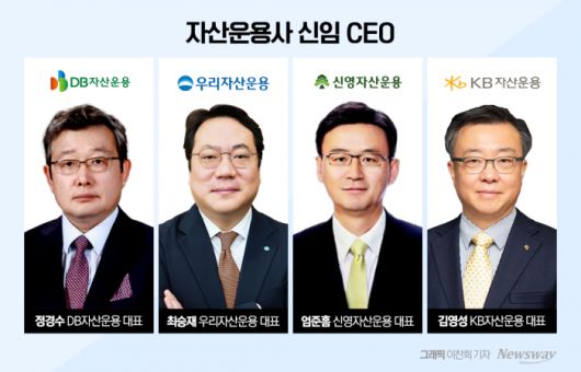 12일 금융투자업계에 따르면 지난해 연말부터 이달까지 KB·신영·우리·DB자산운용 등 4곳의 수장이 교체됐다. 운용업계는 대체투자부문의 리스크 관리를 비롯해 상장지수펀드(ETF), 퇴직연금, 외부위탁운용관리(OCIO) 등의 시장 성장세에 따라 맞춤형 전문가를 앞세우고있다.