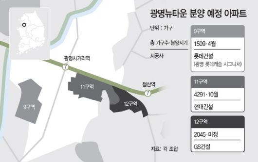 12일 정비업계와 부동산R114 등에 따르면 광명뉴타운 남쪽에 자리한 9R·11R·12R 재개발구역에서 이르면 오는 4월 부터 7845가구가 순차적으로 공급된다. 이들 구역은 지하철 7호선 광명사거리역 ~ 철산역 일대에 자리하고 있어 강남 접근성이 좋다는 평가를 받는다. 가산·구로 디지털 단지와도 가까워 배후수요도 풍부한 편이다.
