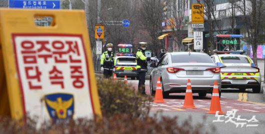 12일 오후 서울 마포구 하늘초등학교 인근 어린이보호구역에서 경찰관들이 신학기 맞이 음주운전 특별단속을 실시하고 있다.