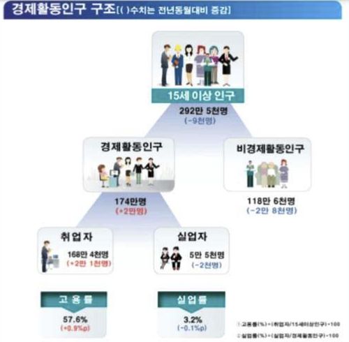 이에 따라 고용률도 작년보다 0.9% 포인트(p) 오른 57.6%를 기록했다.