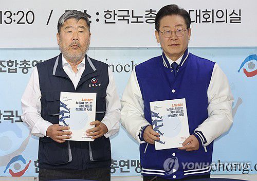이 대표는 "한국노총과 민주당은 노동 중심의 정의로운 전환을 함께하는 동지 관계"라면서 "가감 없는 정책 제안을 해달라"고 했다.