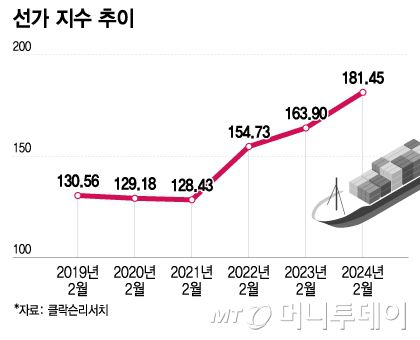 13일 조선해운시황 분석기관 클락슨리서치에 따르면 신조선가 지수는 지난 2월 181.45를 기록했다. 조선업이 슈퍼 호황을 누렸던 2009년 2월(160.36) 이후 14년 만에 최고치다. 이 수치는 2021년까지 130 내외에 머물러 있었지만, 코로나19 엔데믹을 앞둔 2022년부터 치솟기 시작했다.