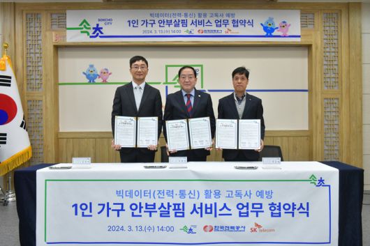 빅데이터 활용한 고독사 예방 위해 속초시·한국전력공사·SK텔레콤 공동 협약