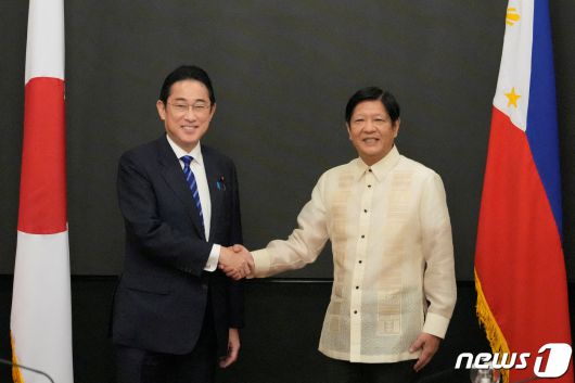 3일(현지시간) 기시다 후미오 일본 총리와 페르디난드 마르코스 주니어 필리핀 대통령이 필리핀 마닐라에서 정상회담을 열고 악수하고 있다. 2023.11.03/ ⓒ 로이터=뉴스1 ⓒ News1 박재하 기자 |
