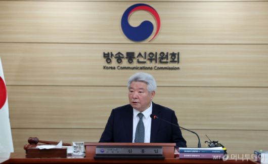 김홍일 방송통신위원회 위원장이 13일 경기도 과천시 정부과천청사 방송통신위원회에서 열린 제14차 방송통신위원회 회의를 주재하고 있다. /사진=뉴스1 |