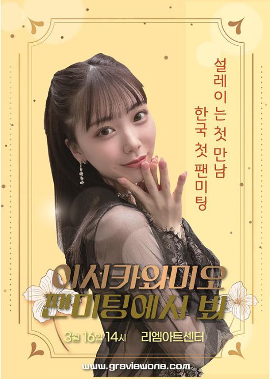 이시카와 미오는 오는 16일 오후 2시 서울 강남구 리엠아트센터에서 개최되는 팬미팅에 참석한다.