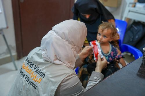 월드비전을 통해 영양실조 치료식을 제공받고 있는 시리아 아동 |