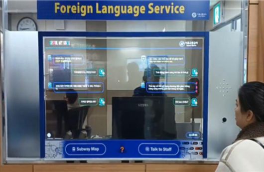 외국인 관광객과 역 직원이 자국어로 대화하면 상대방 언어로 자동 통역해 스크린에 띄워주는 AI통역 시스템이 서울 11개 지하철역에 설치된다. 모두 13개 언어 통역이 가능하다.