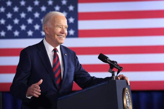 조 바이든 미국 대통령이 13일 위스콘신주 밀워키에서 연설하고 있다. 밀워키/AFP 연합뉴스 |