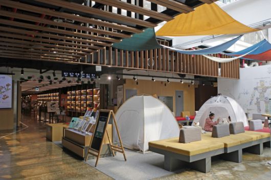 청주열린도서관은 캠핑존 ‘책멍’에서 출발한다. 첫인상부터 떠들어도 괜찮은, 활기찬 도서관을 예고한다. |