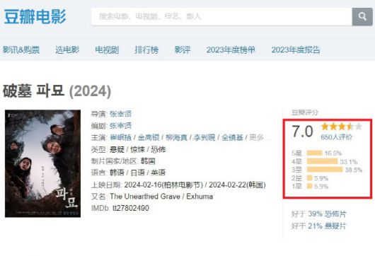 중국 콘텐츠 리뷰 사이트 더우반에서는 ‘파묘’의 리뷰 화면이 이미 만들어졌다. 현재 650여 건의 리뷰가 버젓이 남겨져 있다. 이에 대해 서 교수는 “중국 내에서는 한국 콘텐츠에 대한 ‘불법 유통’이 이제는 일상이 된 상황”이라며 “하지만 어떠한 부끄러움도 느끼지 못한다는 것이 더 기가막힐 따름이다”고 전했다.