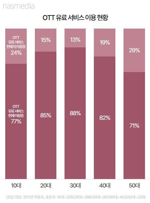 나스미디어가 발표한 인터넷 이용자의 OTT 유료 서비스 이용 현황. /나스미디어 제공 |