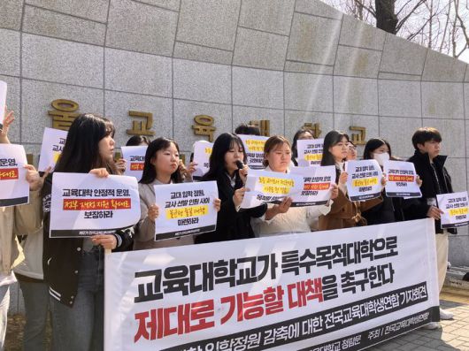 그러면서 "교대 입학정원 조정은 교육을 경쟁시장으로 만들기 위함이 아니라 교대가 초등 교사를 양성하는 특수목적대학으로서 제대로 기능하기 위함이어야 한다"며 "정부는 재정 지원 확대로 교대가 목적형 양성체제로 기능하도록 재정 대책을 반드시 마련하라"고 요구했다.