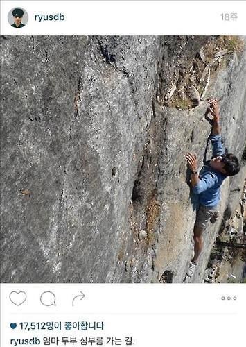 류준열은 지난 2015년 자신의 인스타그램에 "엄마 두부 심부름 가는 길"이라는 글과 절벽에 오르는 사진을 게재했다.